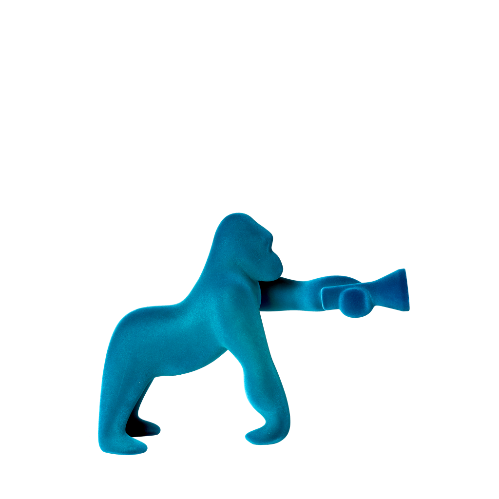 Qeeboo Kong XS Velvet Finish is a gorilla shape lamp with an adjustable arm to direct the light beam at different angles, XS version in 53 cm high, can be used as a table and a floor lamp. Velvet surface softer to the touch.